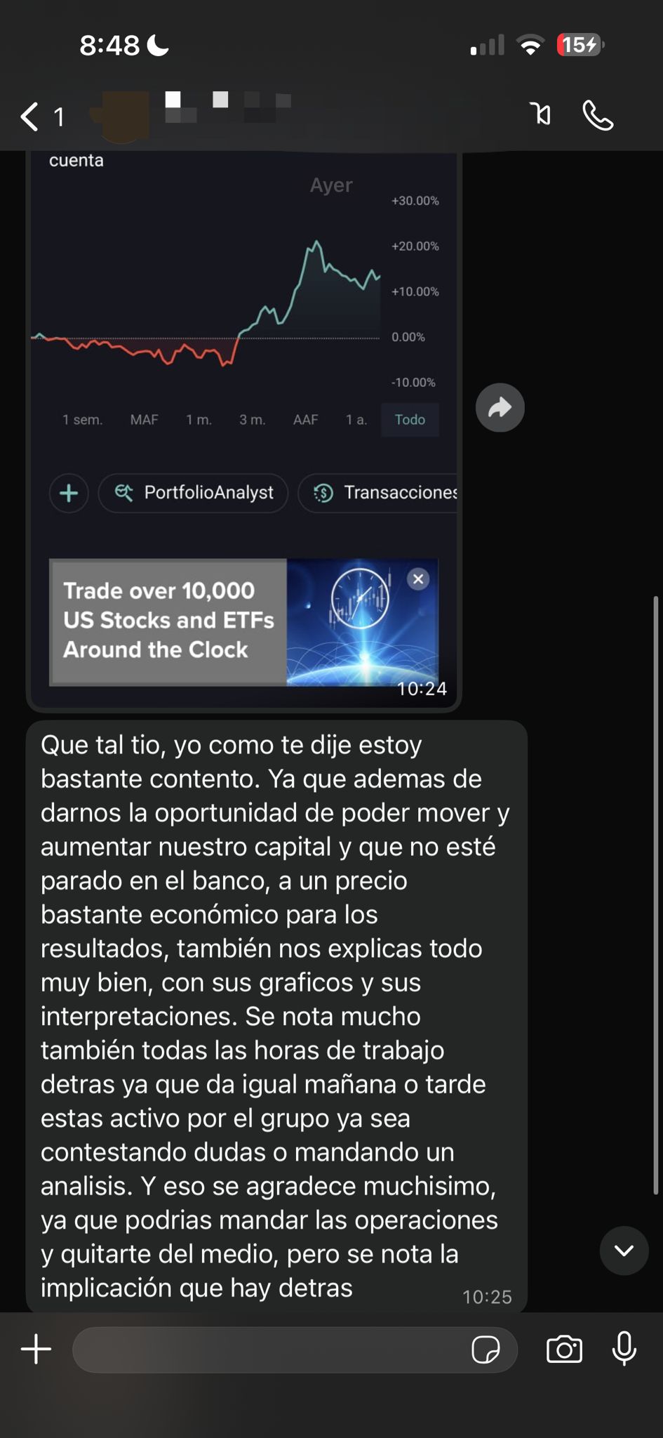 No existe un capital mínimo obligatorio. Tenemos clientes con cuentas muy grandes y otros que comienzan con alrededor de 1.500 €. Lo importante es que el servicio te resulte rentable tras el coste mensual. Además, algunos clientes utilizan el servicio solo con fines formativos.