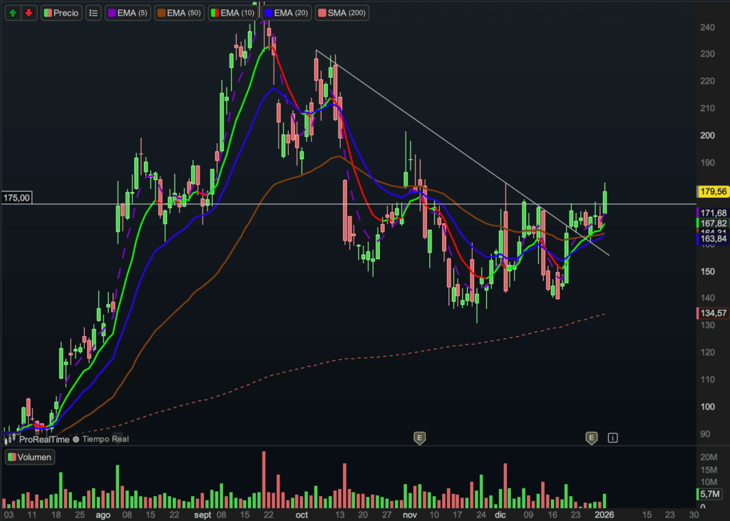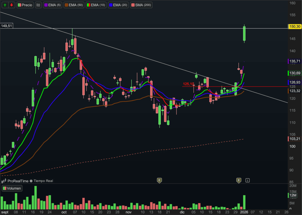 Nuestro foco estará puesto en empresas de defensa, compañías relacionadas con materias primas y en todo el sector de drones y aeroespacial. Aun así, somos conscientes de que ya llevamos una carga importante en nuestras posiciones actuales y no queremos incurrir en una sobreexposición excesiva al mercado. Por este motivo, solo compartiremos aquellos gráficos que consideremos realmente de alta calidad y que ofrezcan las mejores oportunidades.