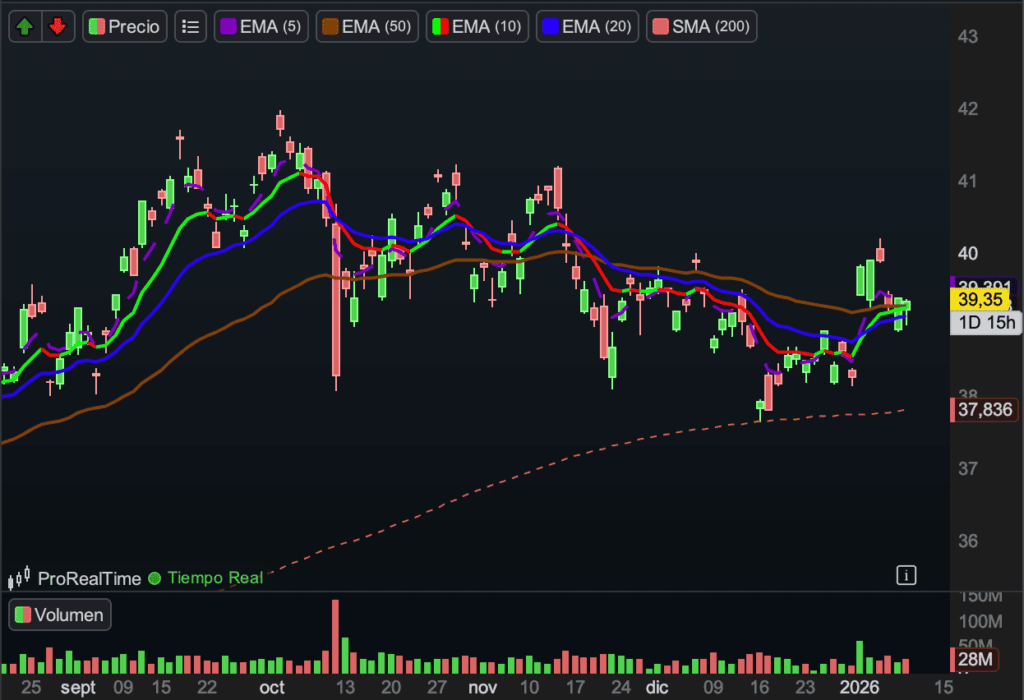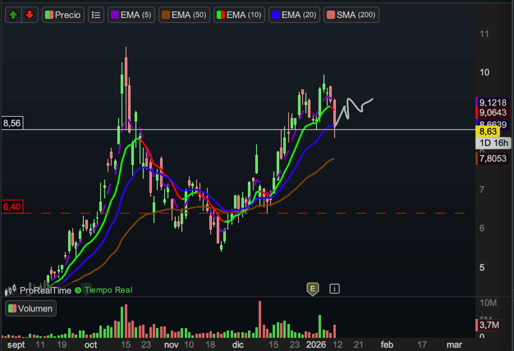 Llevamos este valor en cartera desde hace tiempo y hemos ido reduciendo la posición de forma progresiva. El viernes se produjo un movimiento muy brusco que provocó la activación de varios stops adicionales, un escenario incómodo y especialmente violento cuando se trata de proteger beneficios ya acumulados.