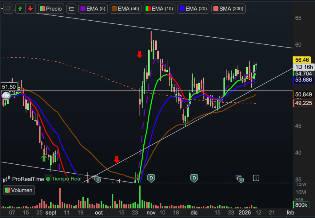 Nuestro “Messi”: un valor que no destaca por su velocidad, pero en el que confiamos como una posición de largo recorrido y que esperamos mantener en cartera durante bastante tiempo. Por el momento, su comportamiento está siendo excelente. STOP 50 % 51,89