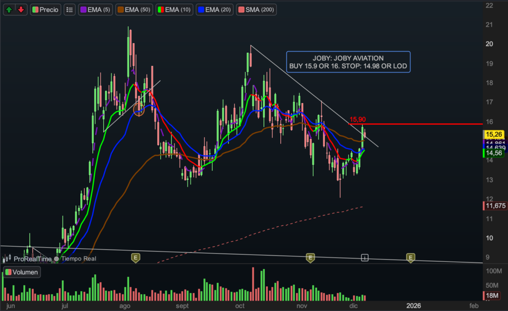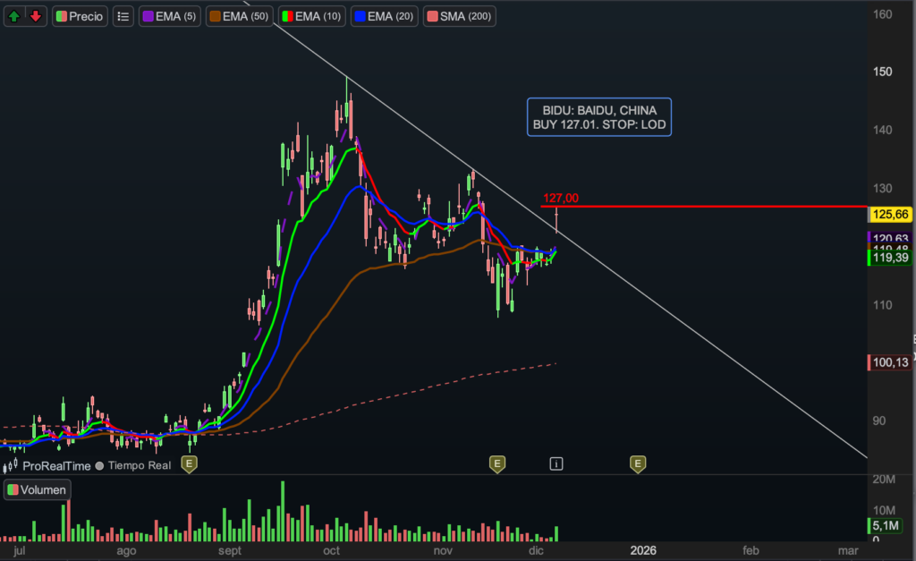 Además, el reciente impulso del IWM, índice representativo de las small caps, añade un factor adicional. Si la “fiesta” continúa —o comienza con mayor fuerza— en este segmento del mercado, acciones como BULL podrían verse especialmente beneficiadas. STOP 9.19. Llevamos acciones y opciones