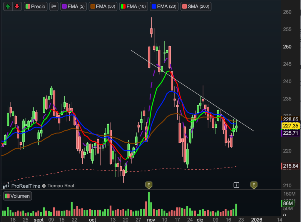 COMPRA 230.01. STOP 223,89. OBJETIVO: 240/260